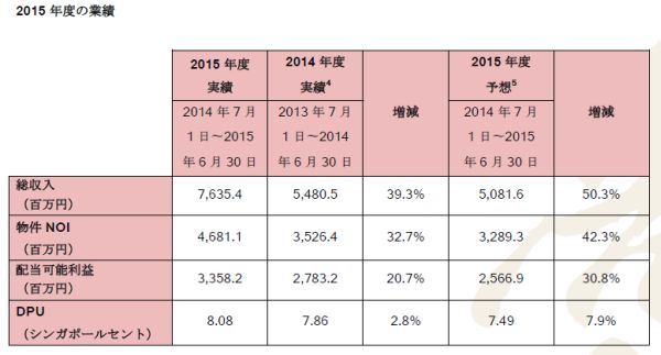 1. これは目論見書に記載されたProjection Year 2015のDPU予想値です。