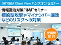 標的型攻撃、マイナンバー、内部不正、IT機器の紛失・盗難……。企業や組織で管理されている情報に対する脅威は、年々多様かつ複雑になっています。本セミナーでは、「SKYSEA Client View」を活用したIT運用管理や情報漏洩対策について、実機を交えてご体験いただきます。また、最新バージョンでさらに強化されたマイナンバーなどの情報漏洩対策、標的型攻撃への対策についてもご紹介します。
