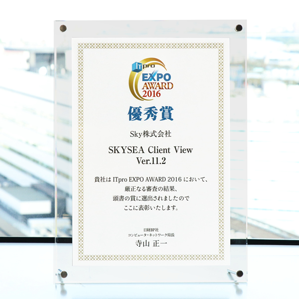 「ITpro EXPO AWARD 2016」は、製品 / サービスとして優れていると同時に、来場者に対しわかりやすくインパクトのあるプレゼンテーションをしたものに贈られます。