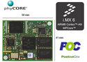 phyCORE-i.MX6 SOMは、市販されている産業工業用向けi.MX 6デザインです。コンパクトなphyCORE-i.MX6 SOMは、Solo、Dual、Quadプロセッサをサポートし、DDR3、eMMC、およびSLC NANDのコンフィギュレーションオプションをサポートするスケーラビリティに優れています。標準基板対基板コネクタに加えて、phyCORE-i.MX6はPHYTECのダイレクト・ソルダー・コネクト技術を利用したコネクタレス・バリアントでも利用できます。コスト効率と高い要求性能を併せ持つphyCORE-i.MX6は、幅広いソリューションへの展開に適しています。