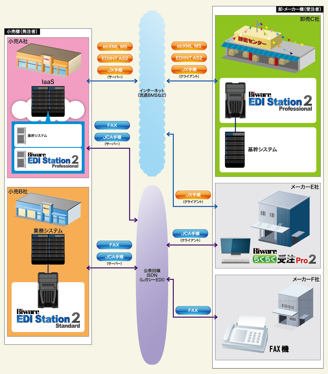 流通業界における「Biware EDI Station 2」の利用イメージ