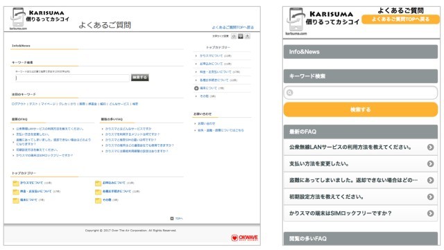 第1弾として6月15日よりOKWAVEのFAQシステム「OKBIZ. for FAQ / Helpdesk Support」(※2)を用いて、「かりスマ」サービス全般に関するFAQ(よくある質問とその回答)を中心としたWebサポートを提供します。