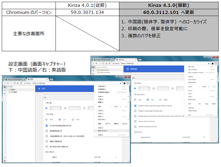 今回のバージョンでは、中国語(簡体字、繁体字)へのローカライズを実現し、Kinzaをインストールする時に利用しているOSのロケール設定に応じて、インターフェースの言語が日本語・英語・中国語へと自動選択されるようになりました。