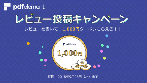PDF編集ソフト「PDFelement」へのレビュー投稿で、1レビューにつきPDFelement用1,000円クーポンプレゼント!この機会にぜひご投稿ください: (リンク »)