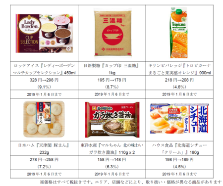 春以降、身近な食品、嗜好(しこう)品、ガソリン、公共料金などの値上げが相次ぐ中、お客様の家計を応援するため、飲料、調味料、麺類など200品目を対象として平均9%値下げします。