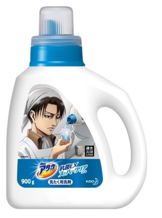 「進撃の巨人」の副題が「Attack(アタック) on titan」であることをはじめ、人気キャラクターである「人類最強の兵士・リヴァイ」が極度の潔癖症として描かれ、汚れやニオイを落とす洗濯のプロ「アタック」との親和性が高いこと、そしてそのリヴァイが主人公となるスピンオフ作品タイトルが「悔いなき選択」であることから「悔いなき洗濯」と称したタイアップキャンペーンの実施が決定しています。