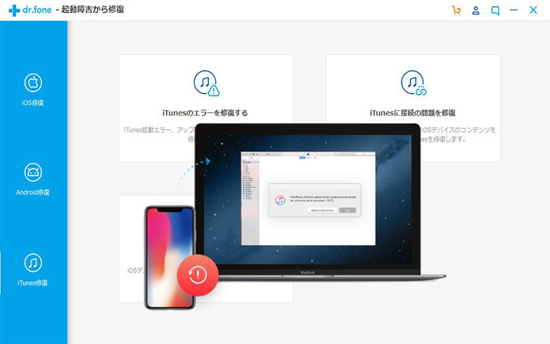 「dr.fone - iTunes修復」はiTunes向けの修復ツールで、iTunesのエラー・iTunesの接続の問題・iTunesの同期エラーなど100種以上のiTunesに関するエラーを修復できます。「dr.fone - iTunes修復」は、すべてのiTunesの問題を解決に導きます。