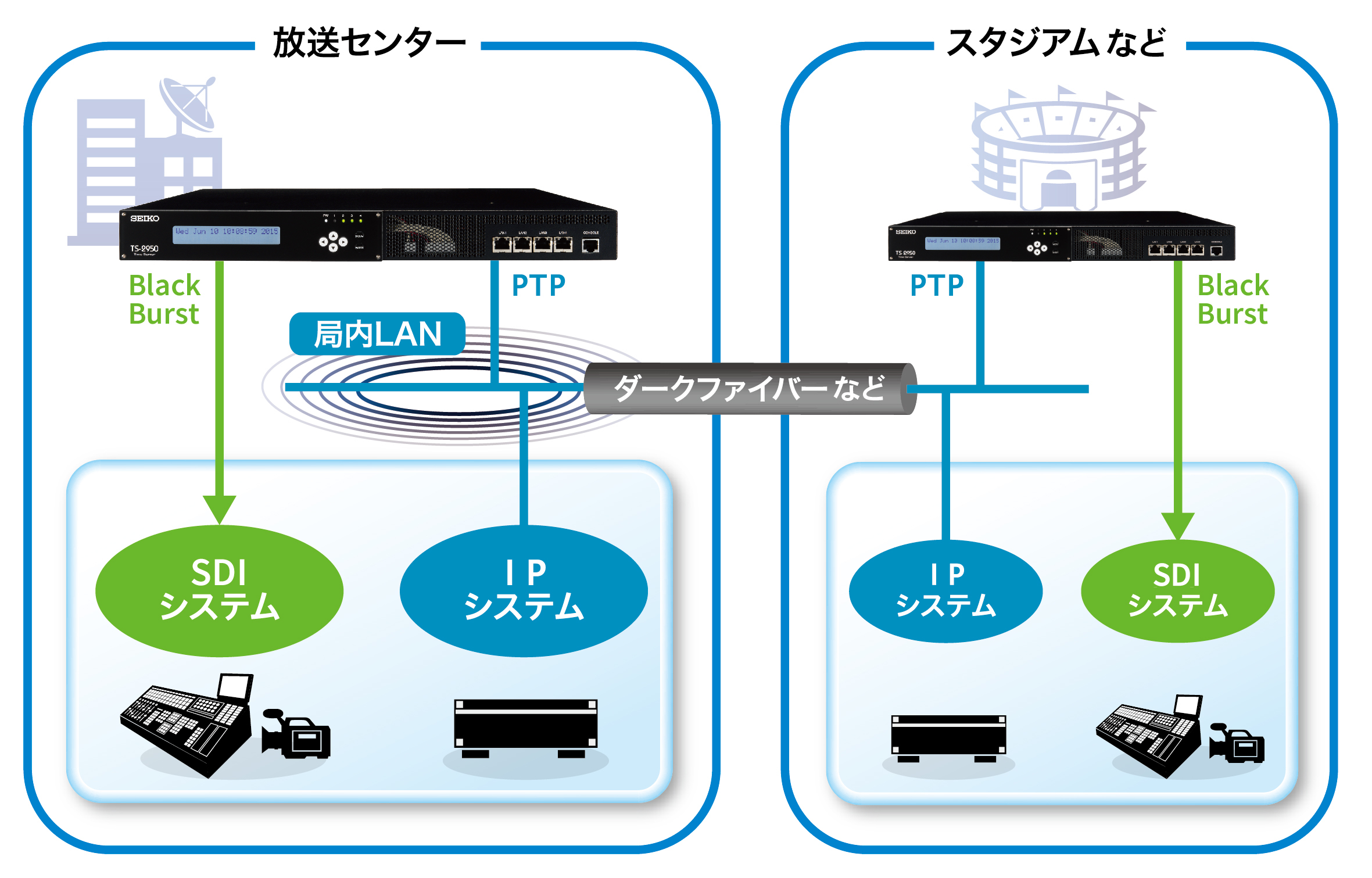 今回発表のBlack Burst信号出力用オプションボードのラインアップ追加により、TS-2950シリーズは、IPシステムだけではなく、従来のSDIシステムと混在する映像伝送システムにおいても同時にご利用いただくことが可能になります。