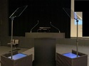 2台のスピーチプロンプターに原稿を映します。演説者へ向けたメッセージを別PCから小画面表示しておくこともできます(野次対応、質疑応答時)。