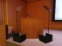 2台のスピーチプロンプターにスクロール原稿を映します。さらに議長に向けたメッセージを別PCから小画面表示しておくこともできます(野次対応、質疑応答時)。そしてスピーチプロンプターに表示している画面を取締役席や監査席でモニターすることができます。