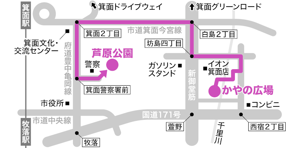 ■場所:スタート…箕面市立かやの広場(西宿1丁目2021番)