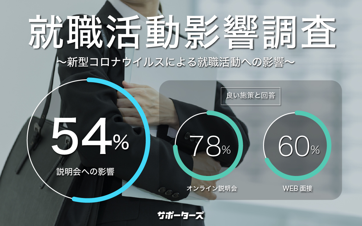 サポーターズ、学生に対し、新型コロナウイルスによる就活への影響を調査。54%が説明会に影響あり