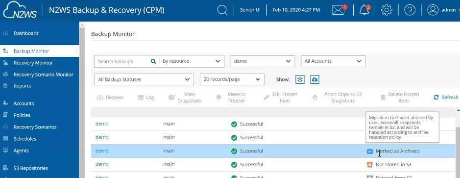 スナップショットをAWS S3からAWS Glacierにアーカイブできるようになりました。これにより安価で長期保存が可能になりました。