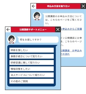 公開講座を多数実施する株式会社インソース(本社:東京都千代田区、代表取締役執行役員社長:舟橋孝之、証券コード:6200、以下「当社」)はこの度、お客さまのご要望にぴったりのWEBページをご案内するチャットボット形式の「公開講座サポートメニュー」をリリースいたしましたので、お知らせします。