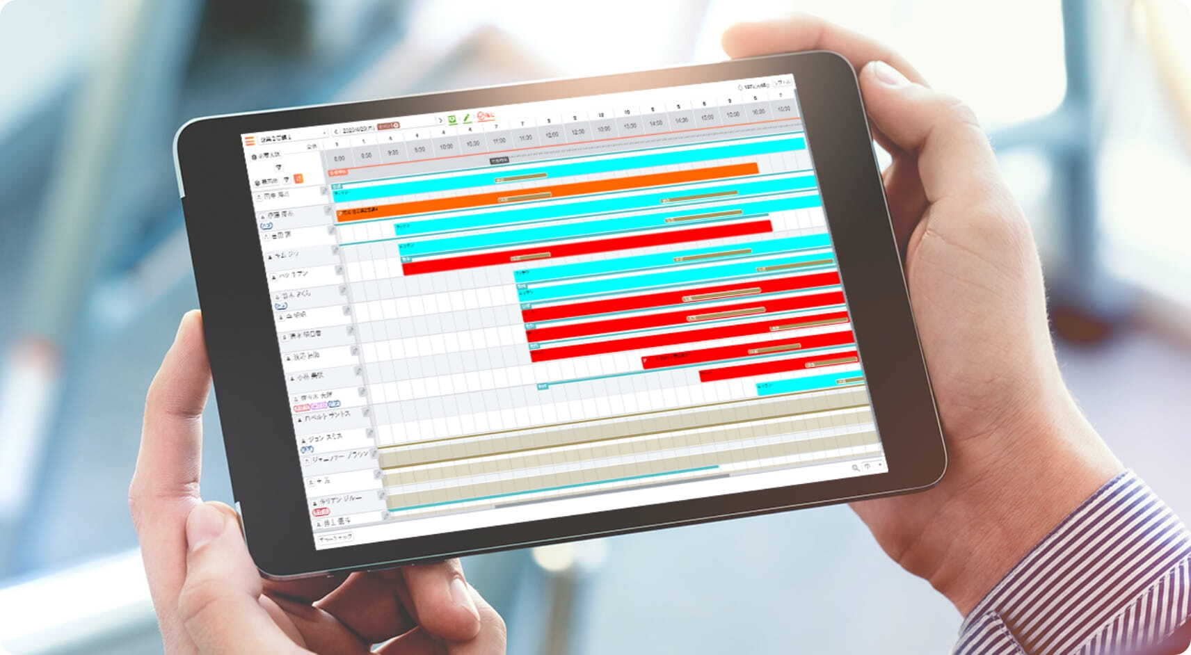 操作できる端末は、パソコンに加えタブレット端末にも対応しています。シフト表の修正作業などは業務の隙間時間を使って、効率良く作業をすることができます。