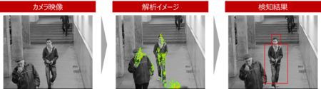 また、大きな特長として、人が発する特有の振動パターンに基づいて不審行動を検知するため、不審行動パターンのような教師データを事前に登録する必要がなく、新規利用や更新時の教師データの開発・登録コストが不要となります。