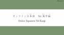 「オンライン日本語 N4漢字編(全14課)」は日本語学習の初心者に向けて、日常生活でよく使われる日本語能力試験N4レベルの漢字の読み方と書き方を習得する動画教材です。総再生時間はほぼ14時間の大ボリュームの映像教材です。プリントして何度でも使える書き取り練習テキストのPDFファイルも付属しているので、学習者は漢字の書き取り練習をすることができます。動画とテキストを使用して、実際の学習時間は140時間を想定しています(個人差有り)。目標としては、日本語能力試験N4レベルの漢字を学び、日本語の漢字の発音と正しい書き方を習得することです。すべてのナレーションに英語字幕が付いているので、日本語初心者でも簡単にフォローができます。