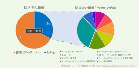 昨年実施した「新型コロナウイルス特別緊急助成」では、アーティストだけでなく、キュレーター、マネジメントスタッフ、インストーラーなどの個人から、芸術祭やアーティスト・イン・レジデンスの運営団体、ギャラリー、美術出版社などの団体まで、国内外の幅広い現代美術関係者からの応募があり、選考の結果104件を採択し助成いたしました。