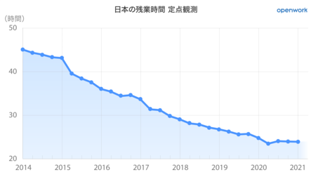 OpenWork 働きがい研究所 「日本の残業時間」定点観測データ