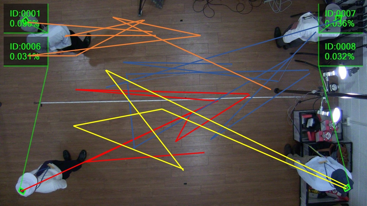 この様に、人の位置情報を用途別にリアルタイムに可視化する事が可能となります。カメレオンコードを利用するので大規模の不特定多数での利用ではなく、工場やオフィスなどの限られた作業動線を低価格で手軽に取得するのに向いております。