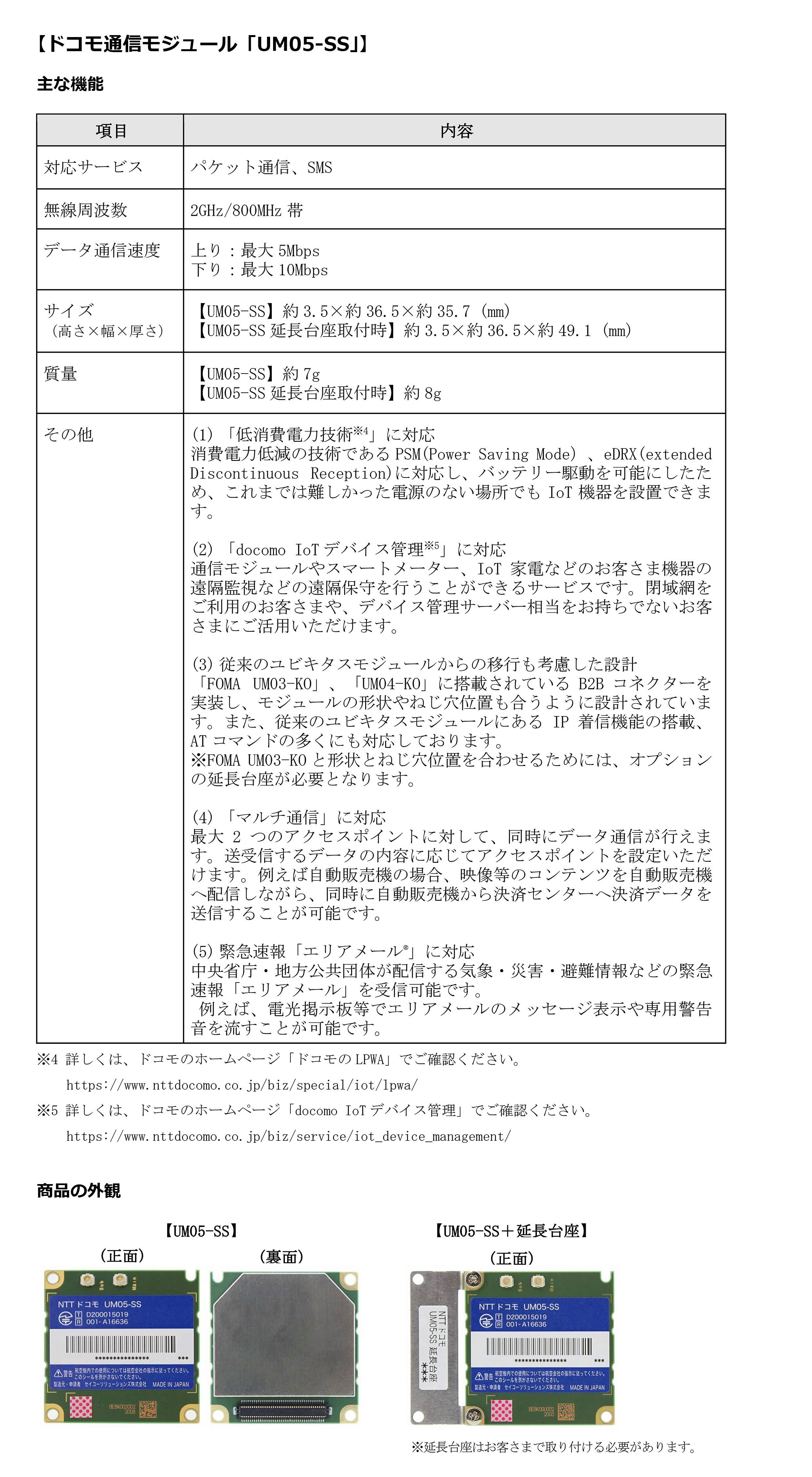 【ドコモ通信モジュール「UM05-SS」の概要】