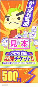 箕面市では、新型コロナウイルス感染症の影響により、売上が減少した市内中小企業者・小規模事業者及び交通事業者の応援と、市民への生活支援を目的として、プレミアム付商品券(小さなお店応援チケット〈第2弾〉)を販売します。