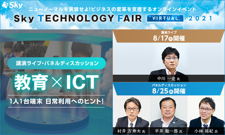 【8月17日(火)、25日(水)開催】オンラインイベント「Sky Technology Fair Virtual 2021」にて、「教育×ICT」講演ライブ&パネルディスカッションを配信します