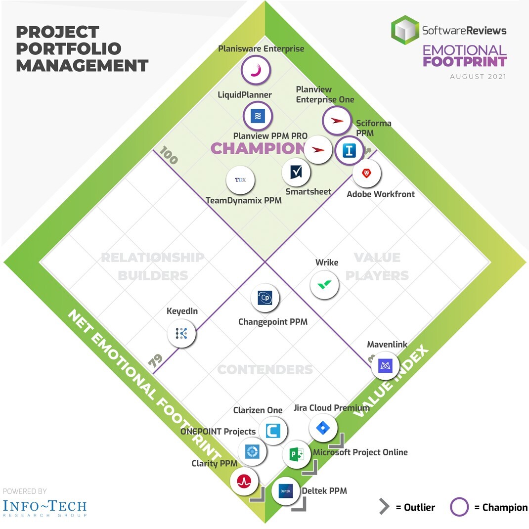 Info-Techのプロジェクトポートフォリオ管理(PPM)レポートでプラニスウェアが第1位
