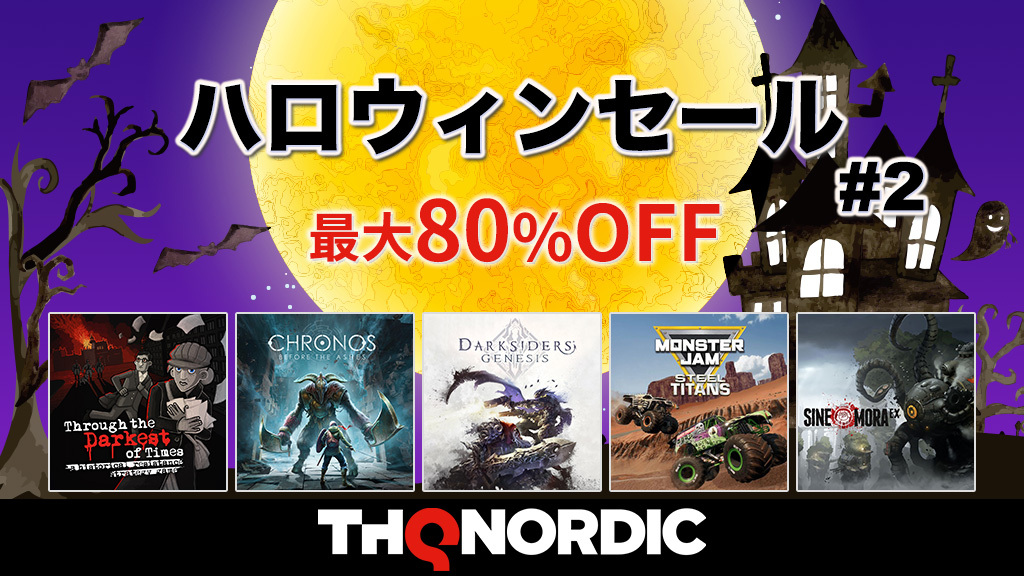 その他、死を糧として迷宮を冒険するアクションアドベンチャーRPG『Chronos: Before the Ashes(クロノス:ビフォー ジ アッシュ)』、巨大な車体が轟音とともに激走するアメリカンモーターショーレースゲーム『Monster Jam Steel Titans(モンスタージャム スティールタイタンズ)』、第二次世界大戦下のドイツで『最も暗い時代』を生き延びる歴史ストラテジーゲーム『Through the Darkest of Times(スルー ザ ダーケスト オブ タイムズ)』、重厚な世界観と演出が必見の横スクロールシューティング『Sine Mora EX』など、全20タイトルがお得な価格でお楽しみいただけます。