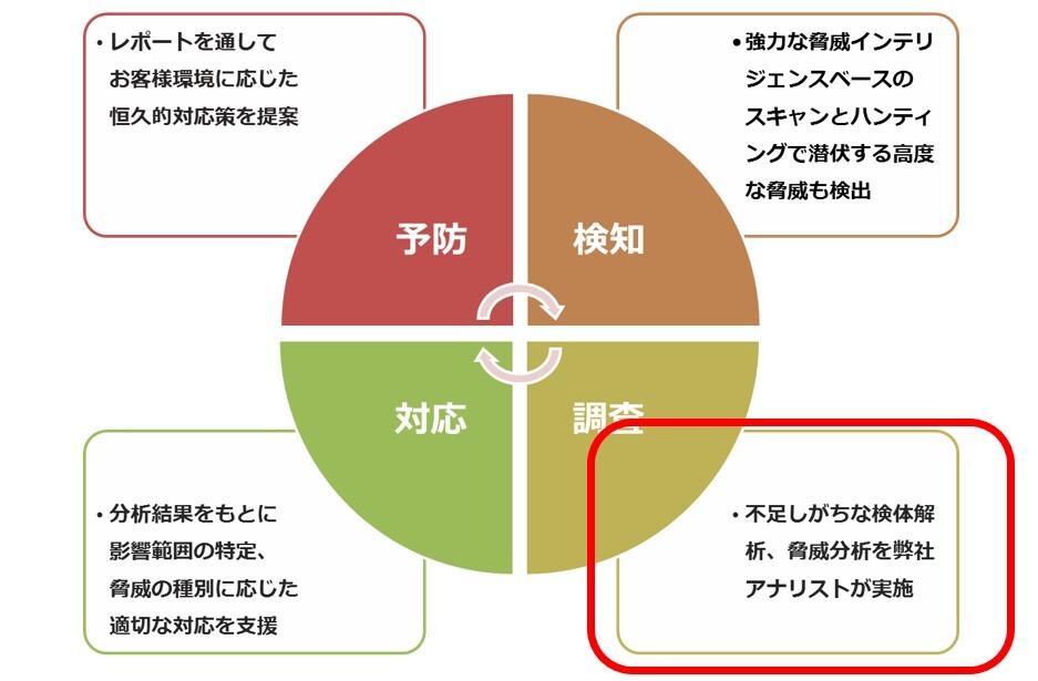 マクニカでは、2013年にセキュリティ研究センターを設立し、日本の組織を狙う脅威を日々解析しています。今後も、これまで得てきた知見をサービスへ活用することで、日本企業のサイバー攻撃の被害を減らし、微力ながらも日本経済の発展に寄与できるよう努めてまいります。