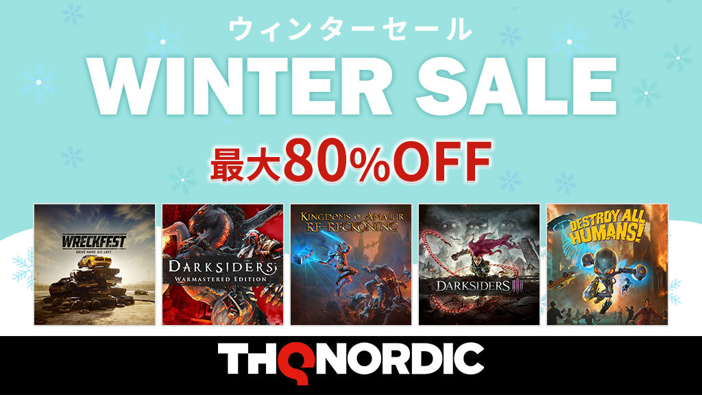 その他、重厚なストーリーとダークな世界観が魅力の人気アクションアドベンチャー「ダークサイダーズシリーズ」、激突レースゲーム『Wreckfest(レックフェスト)』、地球侵略アクション『Destroy All Humans!(デストロイ オール ヒューマンズ!)』など、全24タイトルがお得な価格でお楽しみいただけます。