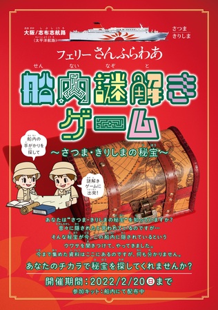 株式会社フェリーさんふらわあ(代表取締役社長:赤坂光次郎)は、九州の自治体や観光協会と協力し、当社が運航するさんふらわあ全船で謎解きゲームを開催します。このイベントは、参加者がフェリーの船内を探検しながら、あるエピソードを探す謎解きを行うものです。正解者には先着で地域の特産品、ノベルティやさんふらわあグッズをプレゼント!何がもらえるかはお楽しみ。また、謎を解くうちに、地域の観光名所やグルメに詳しくなれます。この機会にぜひ、謎解きを楽しみつつ、九州への船旅をお楽しみください。