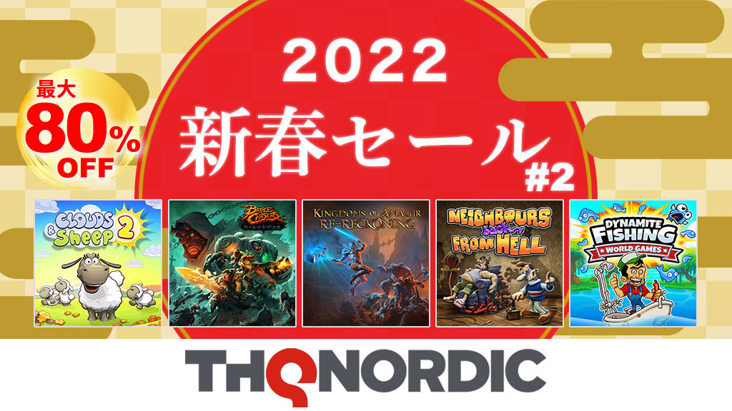 THQ Nordic Japan株式会社は、ニンテンドーeショップ、PlayStation™Storeにて販売中の一部タイトルが、最大80%OFFでお買い求めいただける「THQ Nordic新春セール2022第二弾」を開催中です。