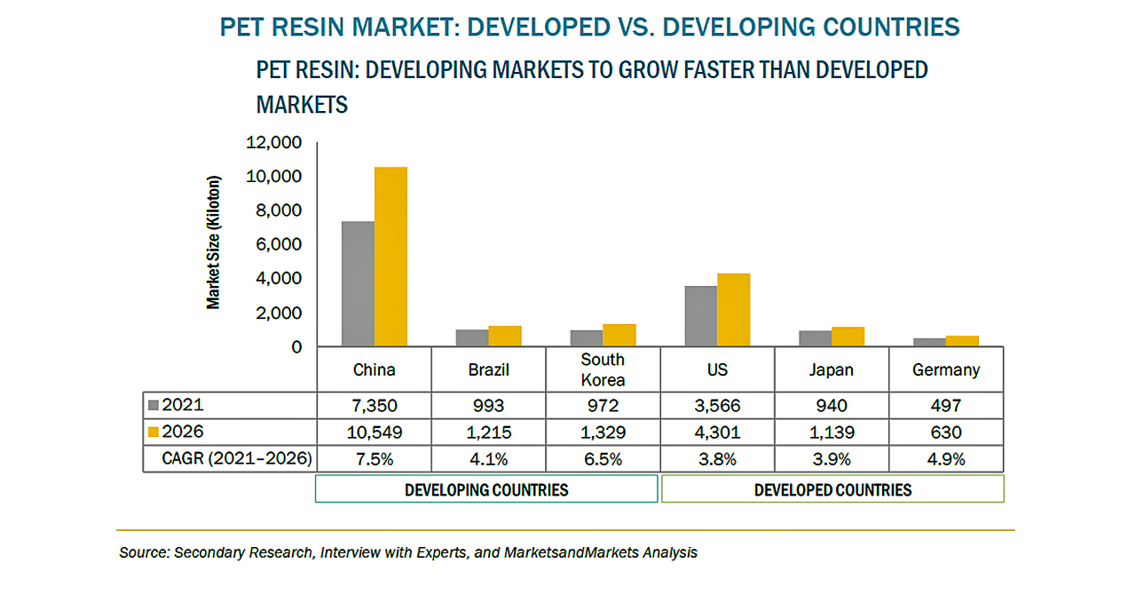 EUでは、2025年からすべての飲料用PETボトルに25%の再生材を使用し、2030年までに30%まで増やすという目標が掲げられています。Coca-Cola、Danone、PepsiCoなどの大手ブランドは、2030年までに自社のボトルでrPETを50%使用することを呼びかけています。インドと東南アジアでは、2030年までに食品用rPETの需要が10~15%増加すると予想されています。これは、ほぼ独占的に、世界の食品飲料(F&B)企業が設定したパッケージングの持続可能性における目標に牽引されています。このため、同地域では回収・リサイクル設備への投資が促進されると予想されます。