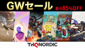 THQ Nordic Japan株式会社は、ニンテンドーeショップ、PlayStation™Storeにて販売中の一部タイトルが、最大85%OFFでお買い求めいただける「THQ Nordicゴールデンウィークセール」を開催中です。