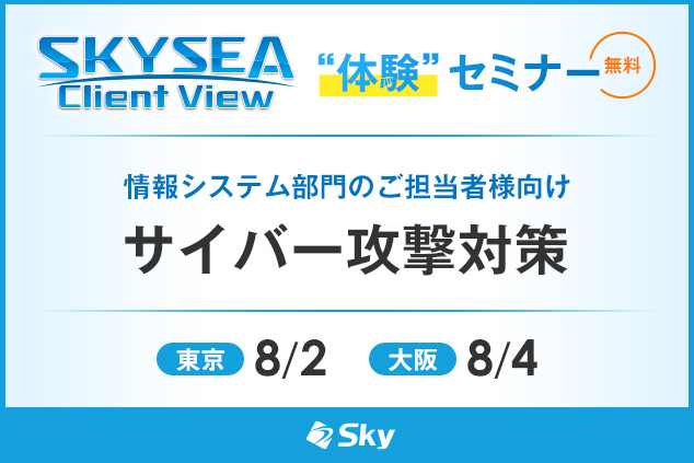 【8月:東京・大阪開催】SKYSEA Client View“体験”セミナー「サイバー攻撃対策」を開催いたします<情報システム部門のご担当者様向け>(受講費無料)