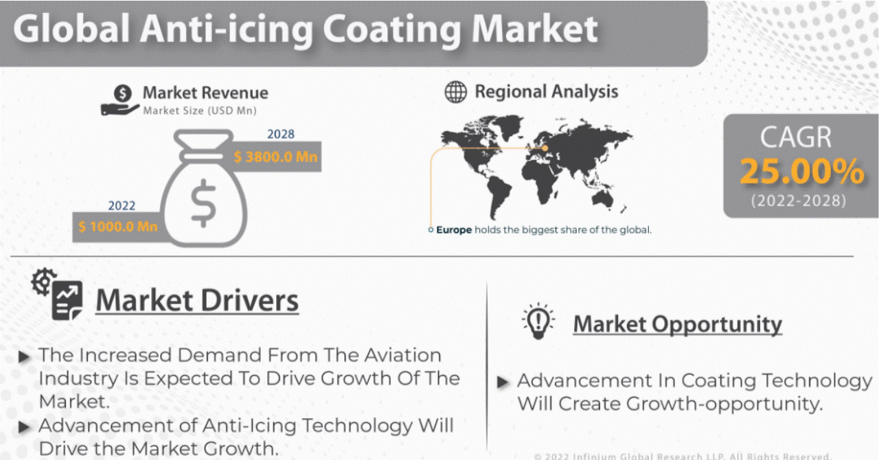 防氷コーティング市場は、2022年から2028年までCAGR25%で成長すると予測されています。