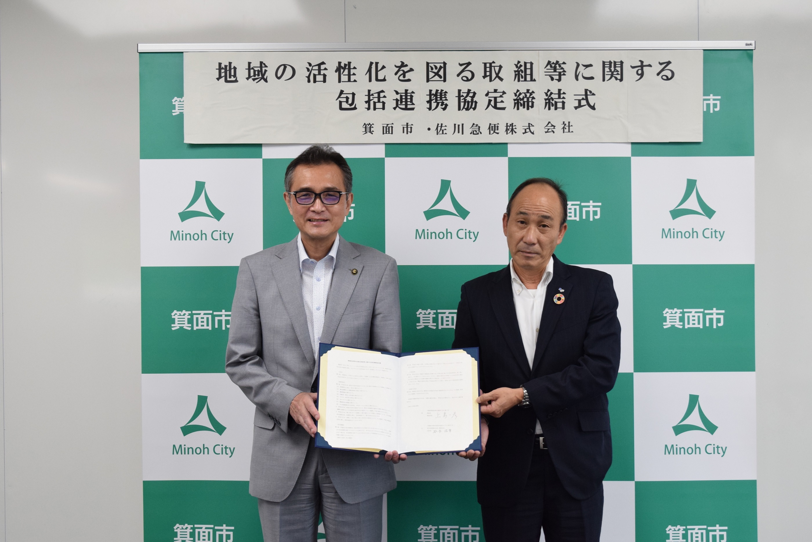 佐川急便株式会社及び箕面市が相互に緊密に連携を図ることにより、双方の資源を有効に活用した協働による活動を推進し、地域の一層の活性化及び市民サービスの向上を図ることを目的とします。