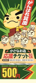 ○商品券:市内の登録店舗で1枚あたり500円分の商品券として使用できます。
