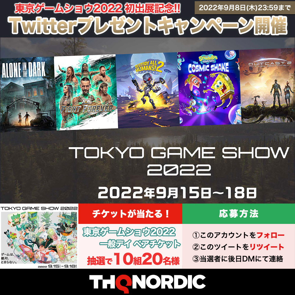 THQ Nordicは、2022年9月15日(木)から18日(日)にかけて、幕張メッセで開催される「東京ゲームショウ2022」に初出展します。出展を記念して東京ゲームショウの一般デイ入場ペアチケットが抽選で10名様に当たる「THQ Nordicペアチケット プレゼントキャンペーン」を開催いたします。