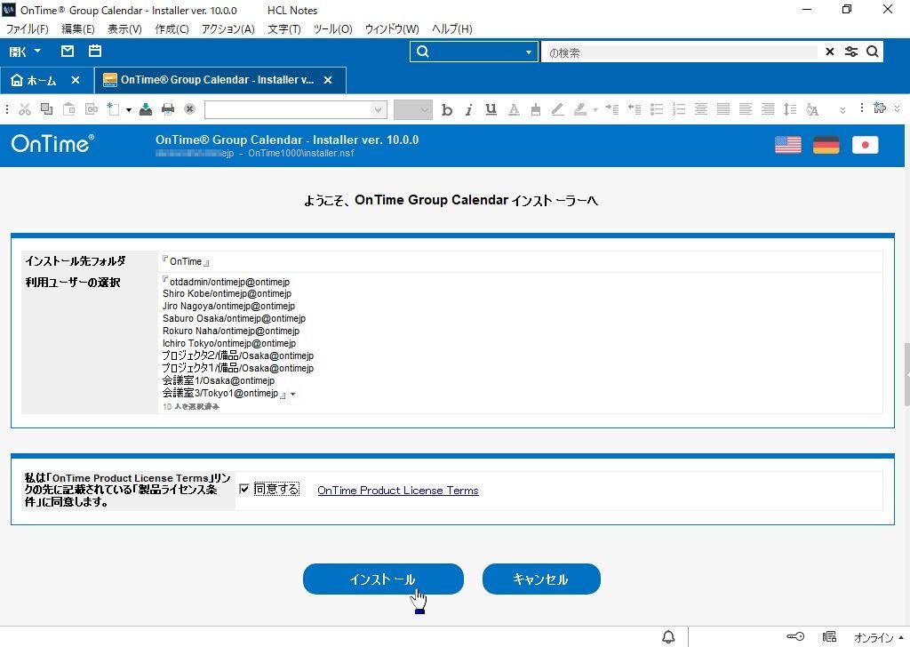 本バージョンでは新たに日本語に対応した簡易インストーラーを実装しました。利用するユーザーを指定すればあとは数クリックするだけですぐにOnTime for Dominoをご利用いただけるようになります。