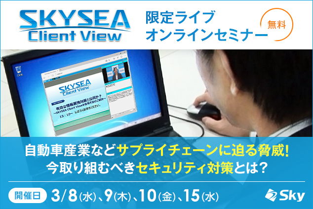 【3月開催オンラインセミナー】自動車産業などサプライチェーンに迫る脅威!今取り組むべきセキュリティ対策とは?<SKYSEA Client View>