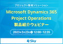 本ウェビナーでは、プロジェクト管理に課題をお持ちの方、新しいプロジェクト管理ソリューションをご検討中の方、「Microsoft Dynamics 365 Project Operations」に興味をお持ちの方に向けて、Sky株式会社で導入支援を行っている「Microsoft Dynamics 365 Project Operations」についてご紹介いたします。製品の概要や特長、Sky株式会社が提供する導入サービスの流れをご説明するほか、製品のデモンストレーション動画もご覧いただけます。