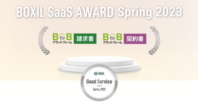 今回の「BOXIL SaaS AWARD Spring 2023」は、2022年1月1日から12月31日までの1年間で新たに投稿された口コミ約14,000件を審査対象としており、その結果、当社の「BtoBプラットフォーム 請求書」が請求書発行システム部門で、また、「BtoBプラットフォーム 契約書」が電子契約システム部門で、それぞれ「Good Service」に選ばれました。