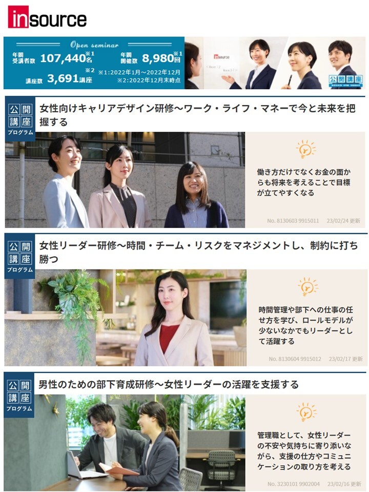 インソース「女性活躍推進に関するコンテンツを新たに開発・リニューアル」