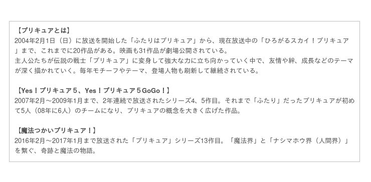 「プリキュア」シリーズは、これまでメイン視聴層である3~6歳の子どもたちに向け作品を制作して参りましたが、20周年という節目を迎える施策の一つとして、今、大人になられた当時のファンが、これからも「プリキュア」シリーズをより楽しんで頂けるよう、2作品の制作を進めております。