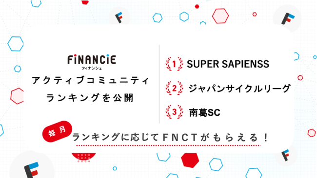 株式会社フィナンシェ(本社 東京都渋谷区 代表取締役 國光 宏尚、以下、フィナンシェ)は、トークン発行型クラウドファンディング「FiNANCiE」で活動するスポーツチームやエンタメプロジェクト等のコミュニティの活動量や成長度を集計した「アクティブコミュニティランキング」を公開しました。本ランキングに基づき、ランクインしたコミュニティには「コミュニティトークンホールディング」の報酬であるFNCT(フィナンシェトークン)の初回付与を実施しました。