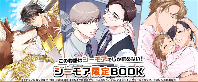 「シーモア限定BOOK」は作家様、出版社様ご協力のもとBLジャンルの人気作品の続刊として“シーモアだけで配信する”描きおろし小冊子となります。その名の通り、『シーモアでしか読めない』特別なストーリーとなりますのでぜひこの機会にお楽しみください。