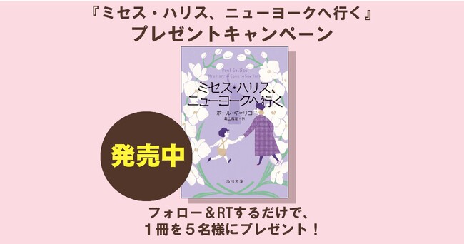 アラカン(61歳)の家政婦さんが大活躍する『ミセス・ハリス、ニューヨークへ行く』(ポール・ギャリコ 訳/亀山龍樹)が角川文庫より発売! これを記念して、2023年5月2日(火)12:00よりTwitterで書籍のプレゼントキャンペーンを行います。