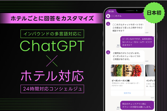 ※ChatGPTに自社データを搭載する事が可能でホテル向けに開発されたサービスとして日本初(自社調べ)(2023年4月時点)